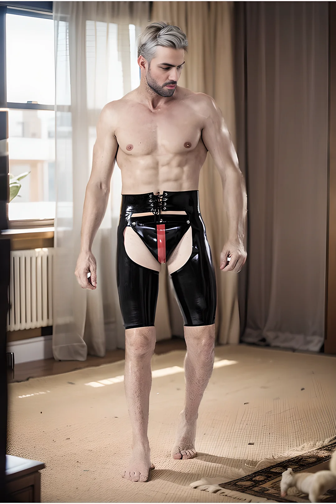 These 'Laced Short Latex Chaps' are a fantastic choice for those who want a daring and unique piece. They can be worn alone or paired with a jockstrap from our catalog to complete the look. They are perfect for a club, a fetish party, or any event where you want to project a confident and unforgettable style.